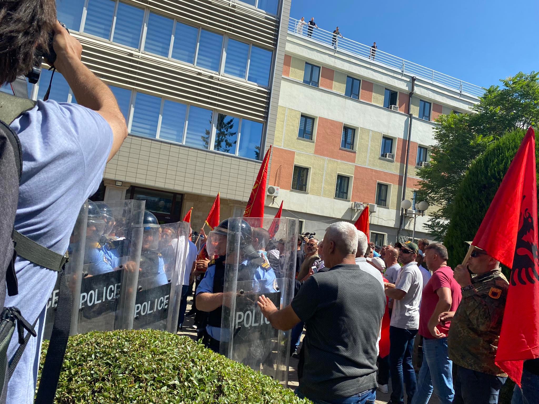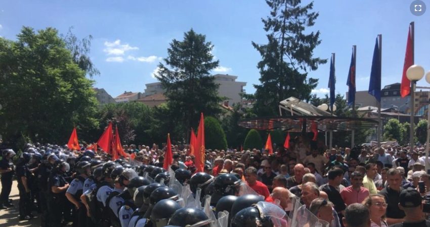 Veteranët e UÇK-së kërkojnë rritje të pensioneve, përplasen me policinë para Kuvendit të Kosovës