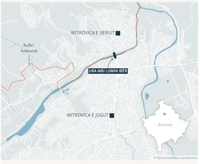 Ura mbi lumin Ibër që nga viti 1999 e ndanë Mitrovicën në pjesën jugore, të banuar me shumicë shqiptare, dhe në pjesën veriore, të banuar me shumicë serbe.