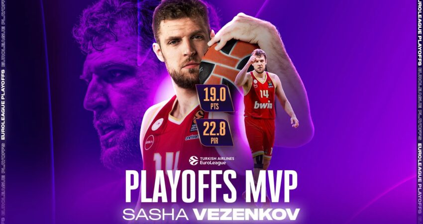 “Euroleague Basketball” shpalli sulmuesin e Olympiacos, Sasha Vezenkov si fituesin e cmimit “Most Valuable Player – Lojtari më i Mirë” në “2025 Turkish Airlines EuroLeague Playoffs”. Vezenkov ishte protagonist në paraqitjen e skuadrës së tij që eleminoi nënkampionët e vitit 2024, Real Madrid në 4 ndeshje. Një forcë konstante për Olympiacos që shënoi mesatarisht 19.0 pikë, mori 6.5 ribaund, dha 3.0 asists dhe rrëmbeu 1.3 topa për ndeshje.