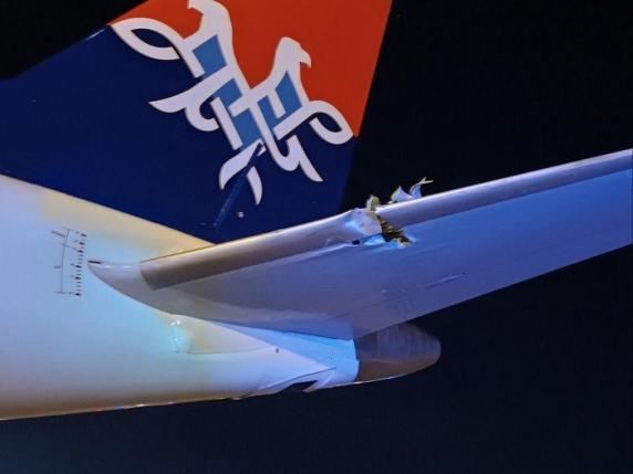 Asnjë nga pasagjerët apo stafi në fluturimin “JU324” për në Dyseldorf, Gjermani, nuk u lëndua. Por trupi i avionit tregon dëmtime të tilla, saqë sipas ekspertëve mund të kishte shkaktuar pasoja shumë më të rënda. Ngjarja ka ndodhur pasditen e vonë të së dielës, 18 shkurt.