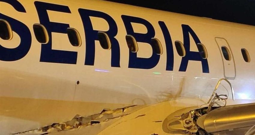 Gazeta Si- Një avion i përdorur nga “Air Serbia” u përplas me një sistem ndriçimi në fund të pistës në aeroportin e Beogradit dhe ishte në gjendje të kthehej vetëm një orë pasi kishte fluturuar mbi zonë dhe kishte dështuar në përpjekjen e parë të uljes.
