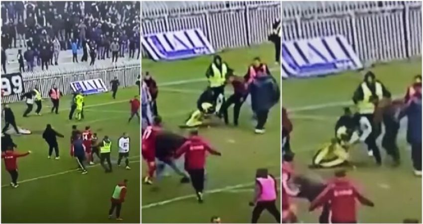 Në momentin e festës për golin e barazimit, tifozët e Gjilanit pushtuan fushën dhe iu vërsulën portierit Stivi Frashëri, duke e shtrirë në tokë dhe duket e goditur me shkelma.