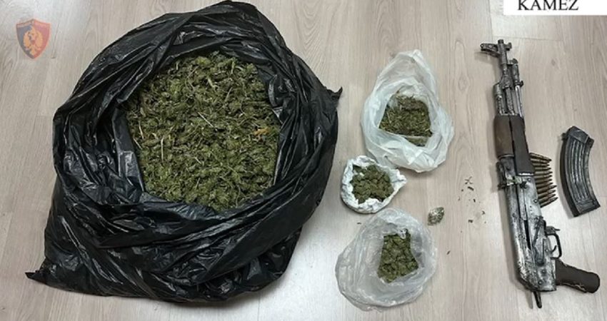 Gjatë kontrollit në banesën e Nikollit, shërbimet e Policisë gjetën 3 kg e 100 gramë kanabis, 1 armë zjarri automatik dhe municion luftarak.