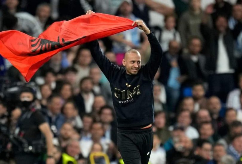 Në fushën e “Santiago Bernabeut” është shpalosur edhe flamuri shqiptar. Një tifoz shqiptar u ka shpëtuar rojeve të sigurisë dhe ka vrapuar në tapetin e gjelbër për të takuar idhullin e tij, Karim Benzema, me flamurin kuqezi në dorë. Pas pak sekondash ai u shoqërua jashtë nga stjuardët e stadiumit. Flamuri shqiptar i ka sjellë fat sulmuesit francez, pasi më pas shënoi golin e kualifikimit.