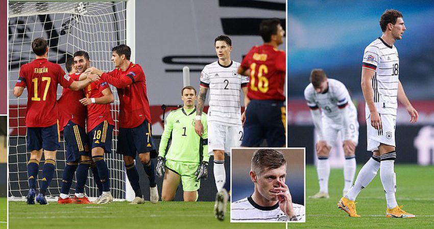 Gjermania kaloi një mbrëmje të tmerrshme në Nations League. Spanja i jep një leksion të ashpër futbolli, pasi e mposhti me rezultatin 6-0 në “Estadio de La Cartuja” të Sevillas dhe i mori kreun e grupit 4 të Ligës A, duke fituar të drejtën për të synuar triumfin në Ligën e Kombeve. Goli i parë erdhi në minutën e 17-të me autor Moratan që kërceu më lartë nga të gjithë. Nuk vonoi shumë dhe erdhi edhe goli i dytë me Ferran Torres , i cili tundi rrjetën pas një topi të kthyer nga shtylla.