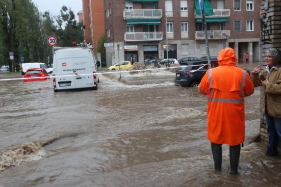 Patrullat e policisë lokale mbyllën rrugët e përmbytura. Viale Fulvio Testi, një arterie e rëndësishme hyrëse në qendrën e qytetit nga veriu, është e mbyllur.