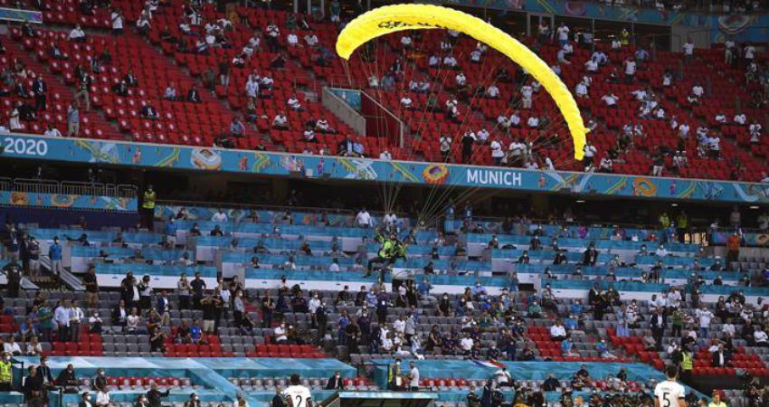 Dy persona kanë mbetur të lënduar nga ulja e pakontrolluar e një parashutisti, aktivist i “Greenpeace”, pak para nisjes së ndeshjes Gjermani-Francë në “Allianz Arena”. Parashutisti nuk e llogariti mirë trajektoren e uljes dhe frikësoi jo pak tifozët në tribuna. Lajmi është konfirmuar nga UEFA, sipas së cilës ajo që ndodhi mund të kishte pasoja më të rënda.