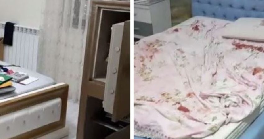 Në pamjet që ka siguruar Gazetasi.al, grabitësit kanë shkaktuar një rrëmujë të madhe në shtëpi, ndërsa kanë arritur të hapin kasafortën duke marrë të gjitha lekët cash si dhe sendet me vlerë. Rroba, libra dhe sende të ndryshme shihen të hedhura mbi krevat, të cilat kanë qenë pa rëndësi për autorët.