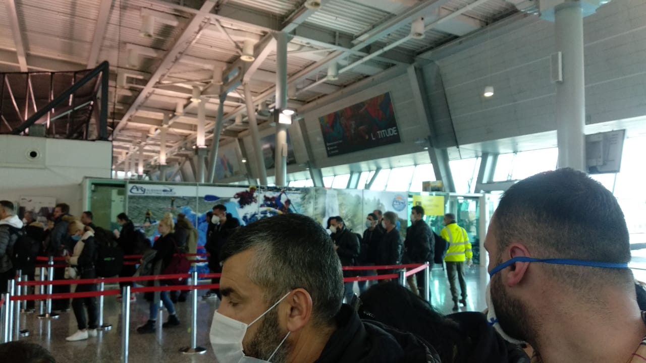 Në këto krizë dhe bllokim udhëtimesh nëpërmjet linja ajrore, në Rinas ka udhëtarë të paktë. Në ditën e sotme në aeroportin e vetëm ndërkombëtarë kanë pasur linja tranzite që vinin nga shtetet e BE-së dhe jashtë saj. Gazeta “Si” ka siguruar disa momente të mbërritjes së udhëtuarëveë në aeroportin e Rinasit që kanë mbërritur nga shtetet e BE-së.