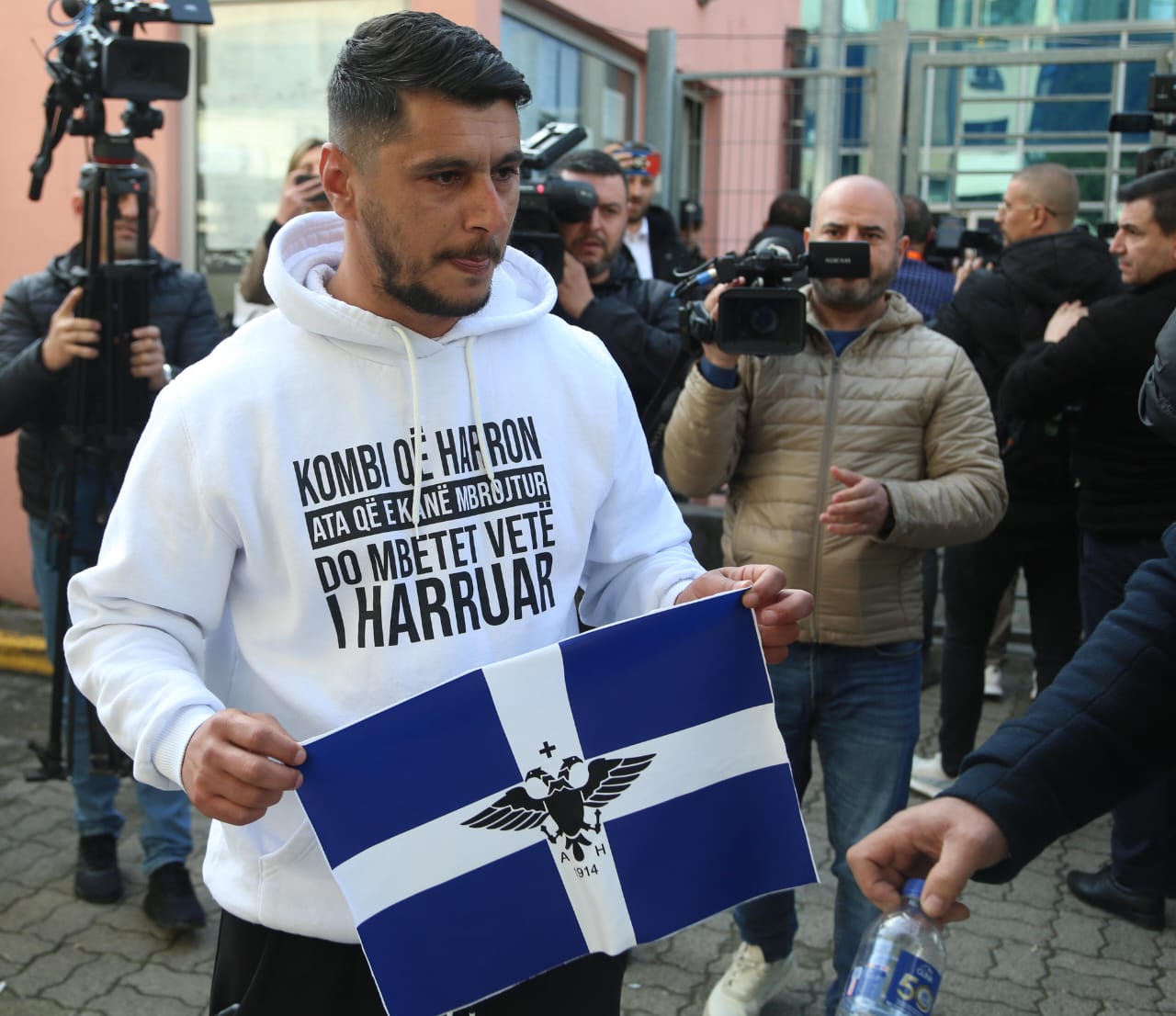 Pak para seancës së sotme, një aktivist tentoi të digjte flamurin me simbole të Greqisë, por u ndalua dhe u shoqërua nga policia.