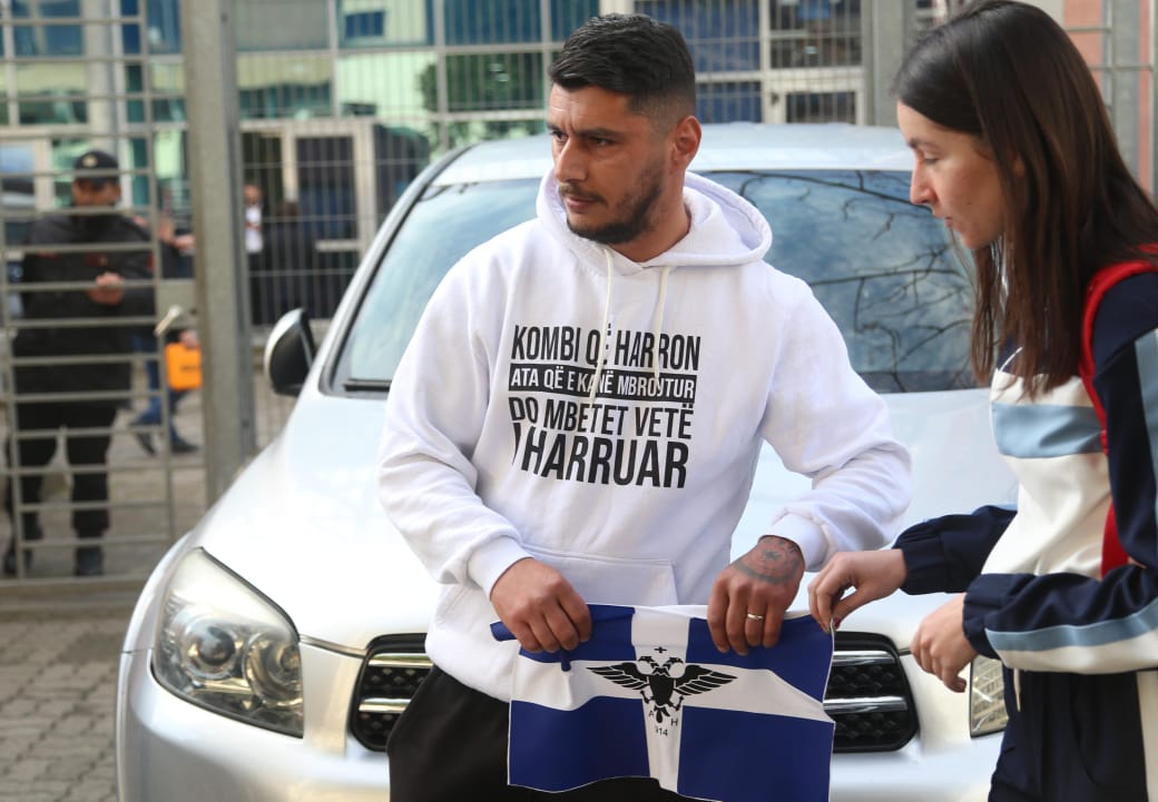 Pasi kreu i PBDNJ dhe simpatizantë të tjerë hynë brenda gjykatës për të ndjekur procesin ndaj Fredi Belerit, aktivisti që është dhe piktor i veprave murale, tentoi të digjte një flamur me simbole greke.
