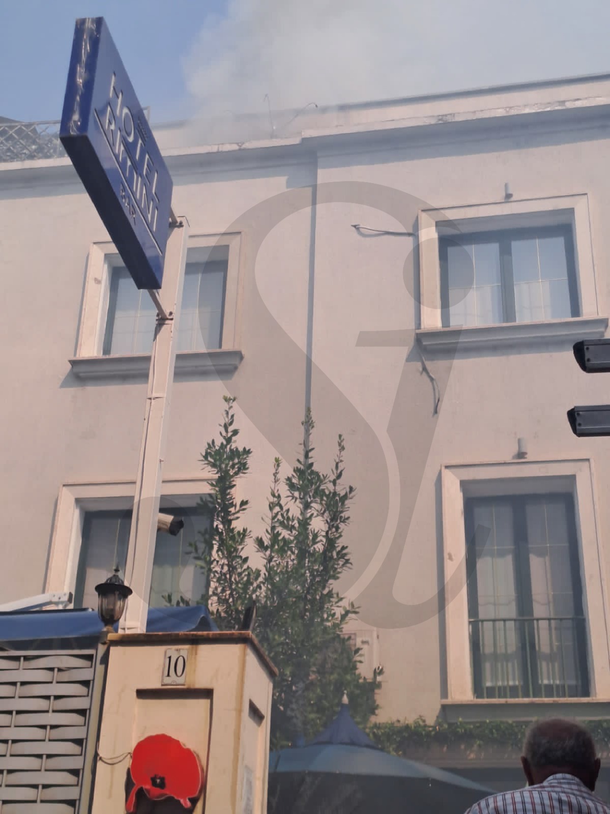 Gazeta Si – Një hotel 3-katësh, ngjitur me murin e gjimnazit “Petro Nini Luarasi” në Tiranë ka marrë flakë këtë të mërkurë.