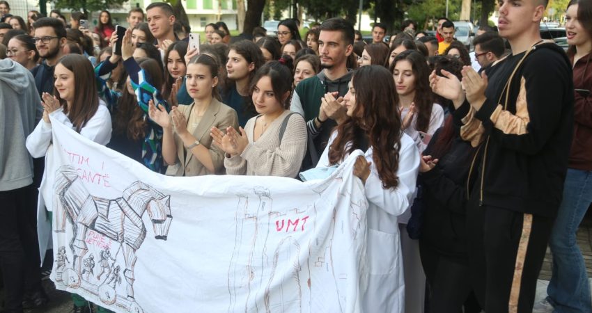 “Viti i parë është bashkë në çdo lloj hapi bashkë me grupet e tjera. Për aq kohë sa nuk na është dhënë asnjë kontratë, ne do të protestojmë dhe nuk do futemi në leksione derisa ky ligj të shfuqizohet”, tha një nga studentët e vitit të parë.