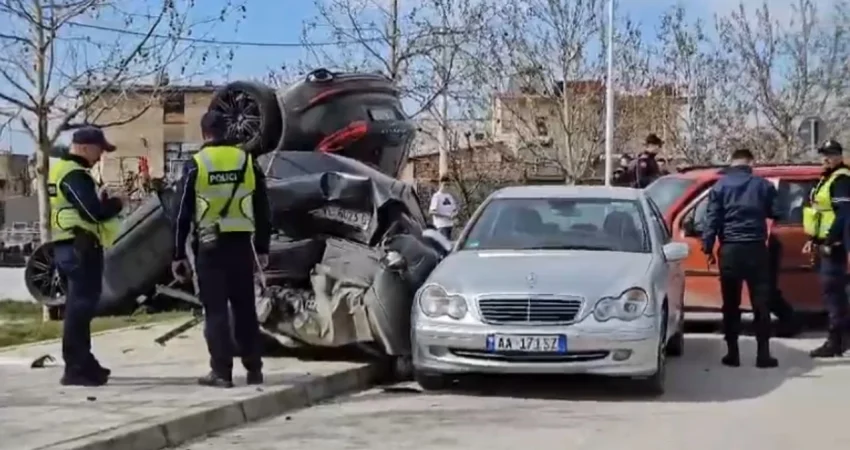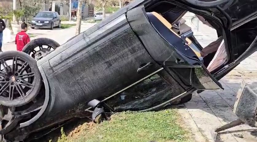 Siç shihet edhe nga pamjet e siguruara Porsche është përmbysur në një anë të rrugës, ndërkohë makinat e tjera kanë pësuar dëme të konsiderueshme materiale.