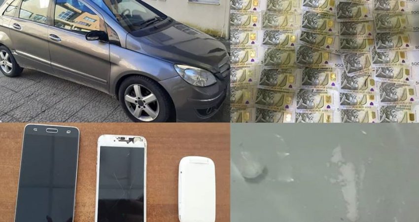 Në cilësinë e provës materiale u sekuestruan një automjet, një pjesë e lekëve të vjedhura dhe 4 celularë. Gjithashtu, në automjet u gjetën dhe u sekuestruan dhe dy doza me lëndë të dyshuar narkotike kokainë.