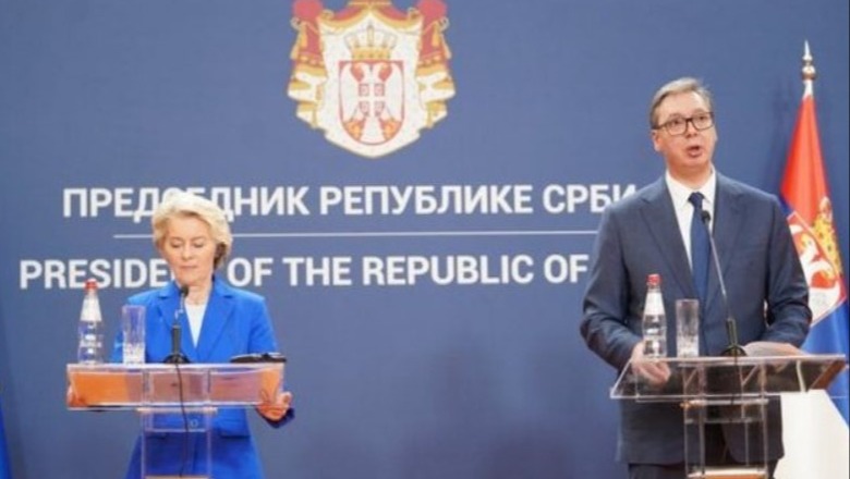 Në anën tjetër, Vuçiç ka thënë se “njohja e pavarësisë së Kosovës nuk është çështje për Serbinë” dhe se nuk i vjen turp ta përsërisë edhe para presidentes së Komisionit Europian.
