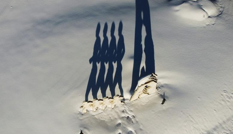 Skulptura “Vrapuesit” nga skulptori grek Theodoros Papagiannis, e cila duket nëpërmjet hijes që krijon në dëborë, pas reshjeve të shumta në  zonën e quajtur Dionysos,  në Greqi pas ditës së djeshme.