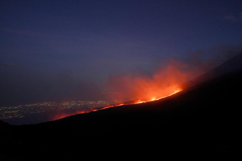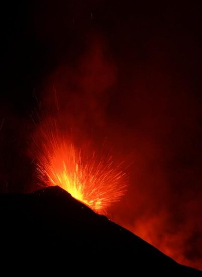 Vullkani më i lartë dhe më aktiv i Evropës shpërtheu këtë javë dhe qelli ndriçoi. Llava e shkrirë e kuqë ndriçoi natën dhe fotografitë nuk mund të ishin më të bukura se kaq./Reuters/