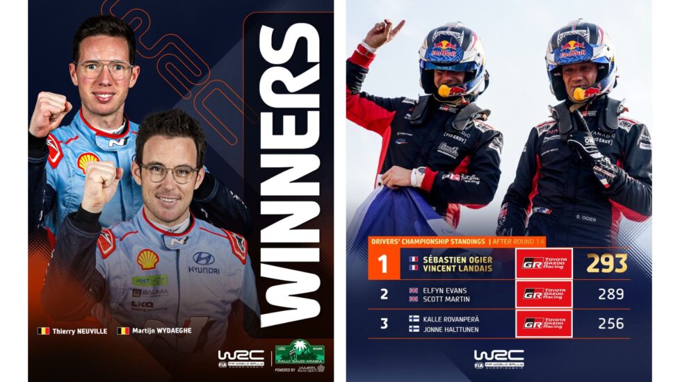Nga Gazeta Si – Sébastien Ogier siguroi titullin e tij të 9 në Kampionatin Botëror të Rally-t, fundjavën që lamë pas, ndërsa Thierry Neuville fitoi Rally-n sfidues të Arabisë Saudite në mbyllje të një sezoni dramatik.