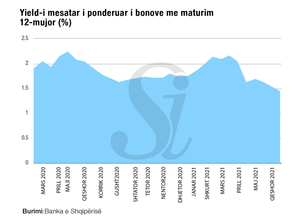 Sipas të dhënave të Bankës së Shqipërisë, yield-i mesatar i ponderuar  zbriti në 1.46%, nga 1.52% që ishte në ankandin e mëparshëm.