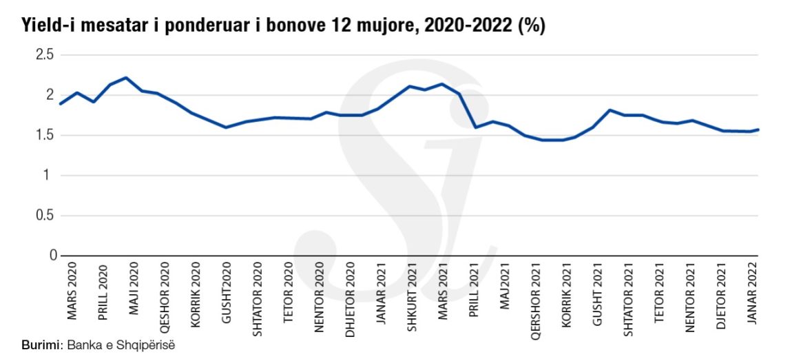 Kjo është hera e parë pas pothuajse një viti, që yield-et mesatare të titujve qeveritarë pësojnë rritje të lehtë, pasi tregjet financiare po normalizohen dhe inflacioni ka kaluar objektivin e vendosur nga BSH. Në muajin dhjetor 2021, inflacioni shënoi nivelet më të larta të 11 viteve të fundit, me 3.7% dhe vetë Banka pret një rritje të mëtejshme deri në gjysmën këtij viti. Gjë që përsëri stimulon rritjen e mëtejshme të yield-it të emetimit të bonove të thesarit.