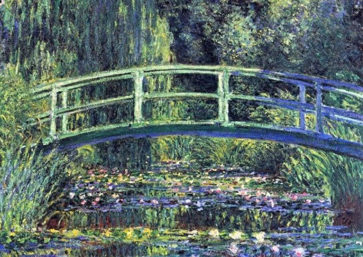 Piktori francez arriti të krijojë një vepër të vërtetë arti, një paletë me një pellg të madh zambakësh uji dhe një urë delikate japoneze që e kalon atë nga njëra anë në tjetrën.