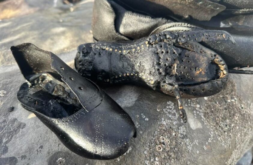 Gazeta Si – Ditët e fundit, një grup vullnetarësh që po pastronin bregun, gjetën qindra këpucë lëkure të zeza në plazhin e Ogmore-by-Sea, një fshat në Uellsin Jugor në bregdetin jugperëndimor të Mbretërisë së Bashkuar.