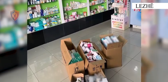 “U vu në pranga pronari i 2 prej bizneseve, shtetasi A. D., 34 vjeç, banues në Lezhë, pasi kishte fshehur në ambientet e farmacisë dhe në raftet me produkte ushqimore, në magazinën e një marketi, 300 kuti me ilaçe, një pjesë e të cilave nuk kishte elementin e autenticitetit në ambalazhe, ndërsa pjesa tjetër nuk kishte pullën e Agjencisë Shtetërore të Barnave”, njoftoi policia.