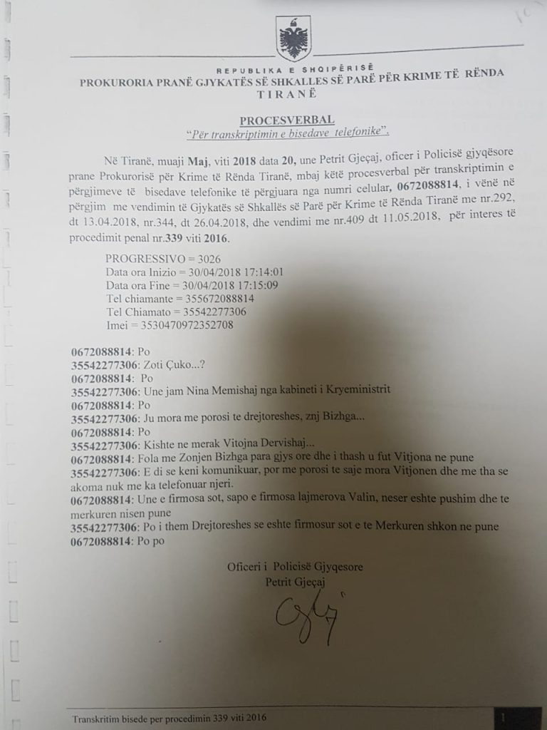 Blerina Gjylameti përmendet në një bisedë të Çukos me një person të tretë për ndërhyrjen në punësimin e një personi të lidhur me Partinë Socialiste, ndërsa Paulin Sterkaj ankohet për transferimin e një policeje me origjinë nga Tropoja, nga burgu 313 te “Ali Demi”.