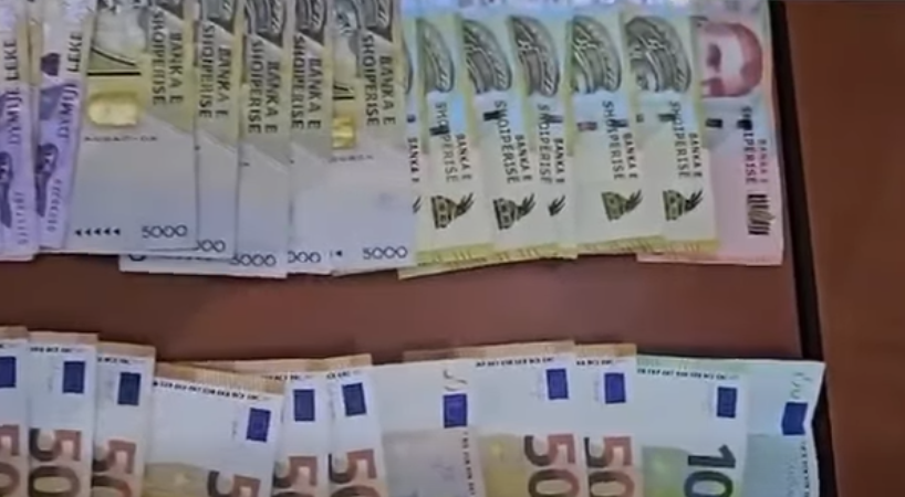 Në cilësinë e provës materiale u sekuestruan gjithsej 1 080 euro, 116 700 lekë, 120 dollarë amerikanë, 80 paund britanikë, 150 franga dhe 3 430 dinarë, si dhe dy pasaporta të shtetaseve të huaja, 8 aparate celularë, karta telefoni dhe blloqe shënimesh.