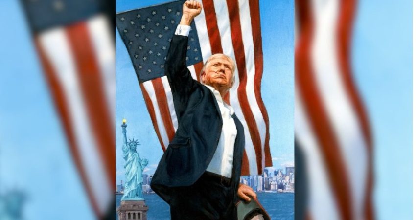 Portreti, i krijuar nga piktori i njohur rus Nikas Safronov, paraqet ish-presidentin amerikan duke ngritur grushtin lart në skenë, me gjak në fytyrë dhe një plagë të dukshme, një moment pas atentatit të dështuar ndaj tij në Butler, Pennsylvania në korrik të vitit 2024.
