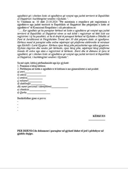 Këtë formular ankuesit e dërgojnë në adresën e postës elektronike [email protected] e më pas brenda 48 orësh do të merren në shqyrtim nga Gjykata e Tiranës.