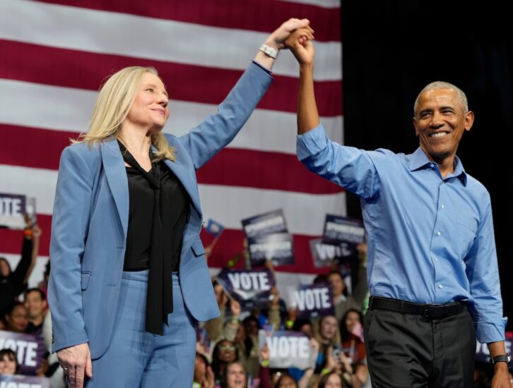 Kandidatja demokrate për guvernator, Abigail Spanberger, flet në një tubim me Barack Obamën në Norfolk, Virxhinia