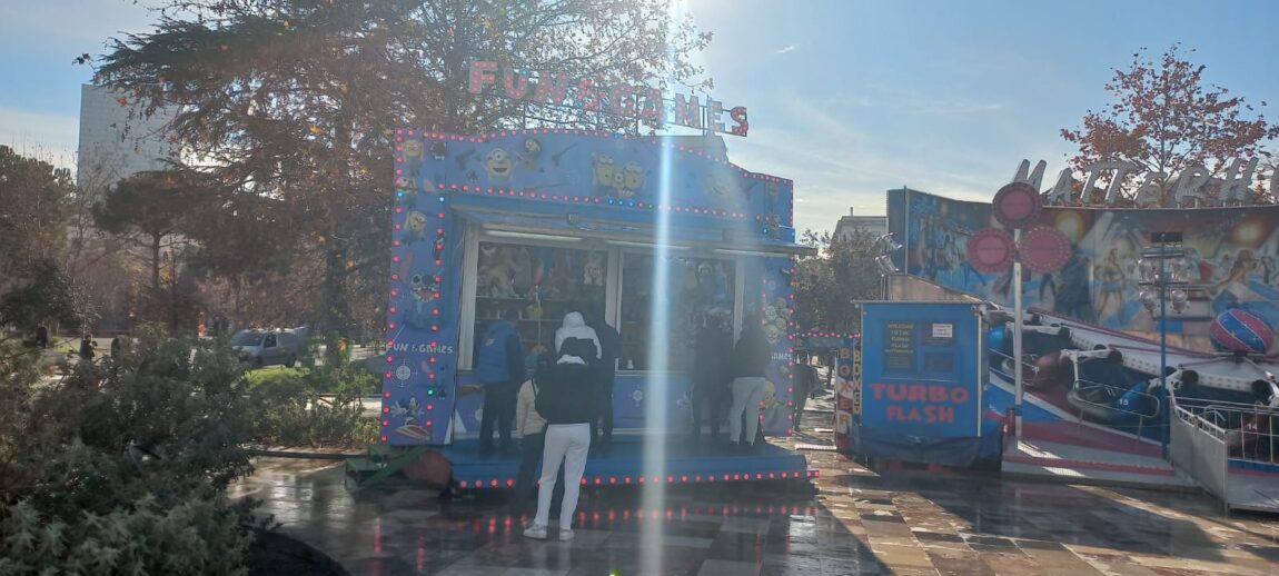 Sheshi Skënderbej, si çdo dhjetor, edhe këtë vit është shndërruar në një qendër deri diku argëtimi. Kioskat tipike prej druri dhe mekanizmat e lojërave të vendosura anash tyre ndërtojnë mozaikun e përditshëm të festave. Këtë vit duket sikur ka një sistemim më të qartë të objekteve: diametri i sheshit është më i hapur dhe lojërat apo mekanizmat e mëdhenj prej hekuri, që vite më parë krijonin një kakofoni të padurueshme, janë vendosur në distancë. Kritikat e viteve të shkuara, kësaj here, duket se nuk kanë rënë në vesh të shurdhër.