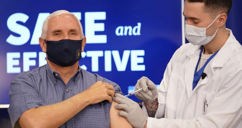 Ai mori dozën e parë të vaksinës Pfizer/BioNTech në Shtëpinë e Bardhë, së bashku me gruan e tij, Karen, dhe mjekun Jerome Adams. Ngjarja u transmetua drejtpërdrejt në televizion.